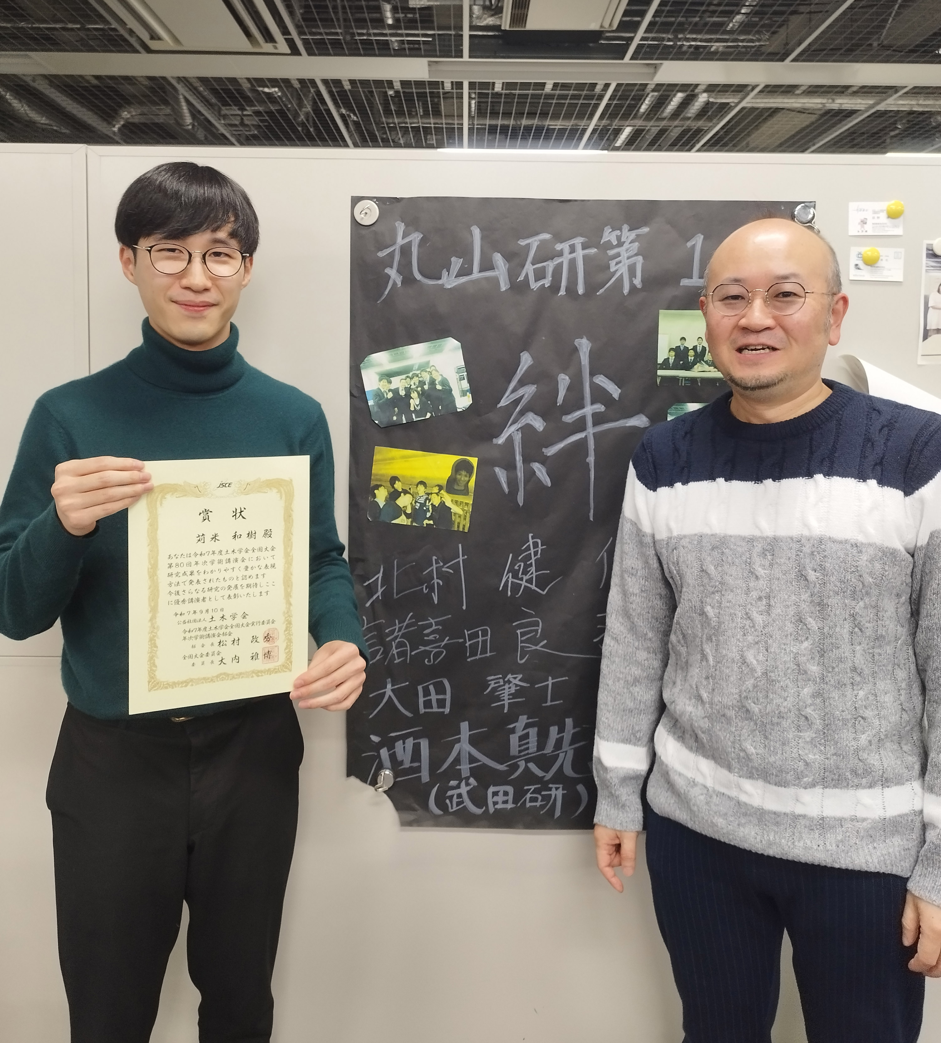 令和7年度土木学会全国大会・第80回年次学術講演会にて、丸山研究室博士後期課程2年生の苅米和樹くんが年次学術講演会優秀講演者として表彰されました。